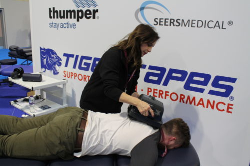 We enjoyed showing you the power of our Thumper percussive massagers at Physique Management’s pavilion in Therapy Expo 2017 – Birmingham, UK. Here, we are using the Mini Pro – one of our most popular massagers that deliver a 6mm penetration to the muscle.